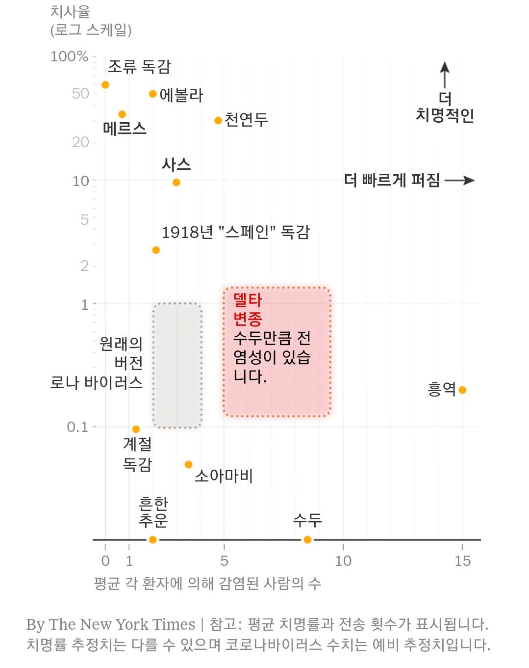 - 델타변이 바이러스는 계절성 독감보다 전염성이 높음