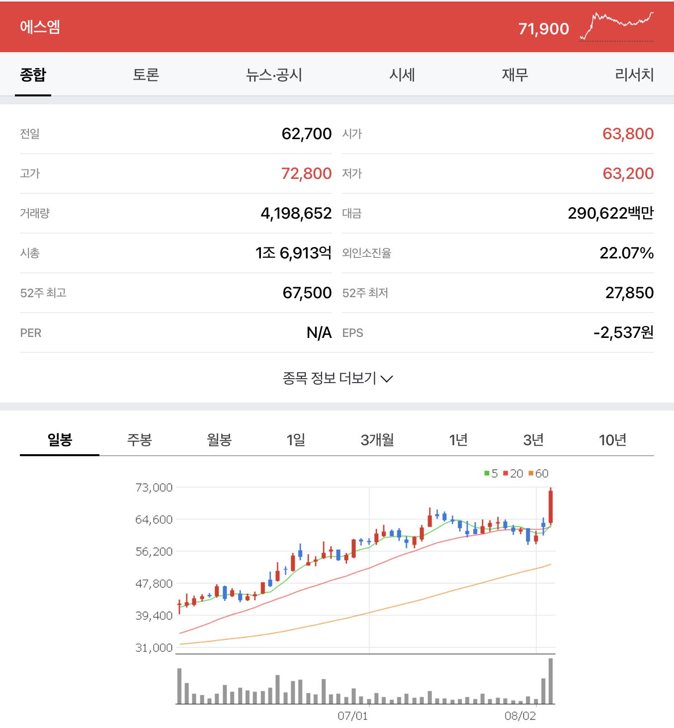 에스엠(SM) 주가
