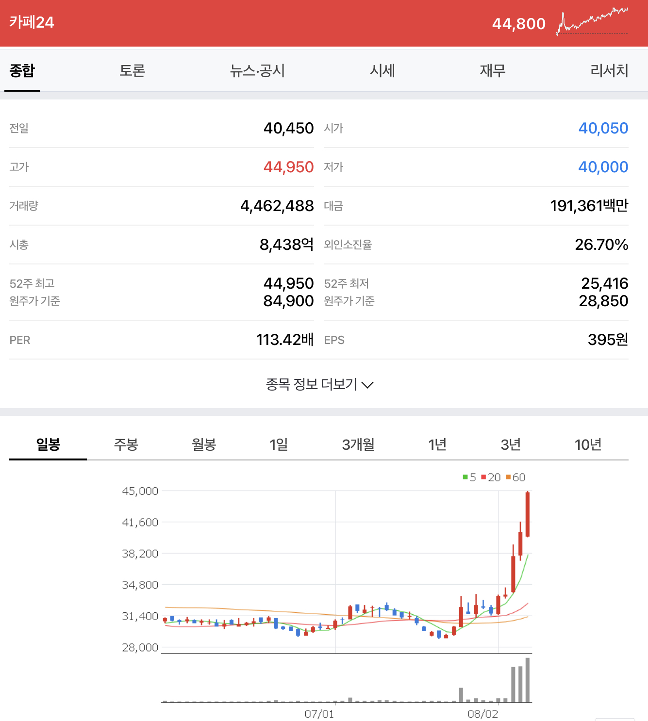 거래량도 역대급 거래량을 보이고 있으며 오늘 뉴스로 인해 최고점도 멀지않아 보입니다.