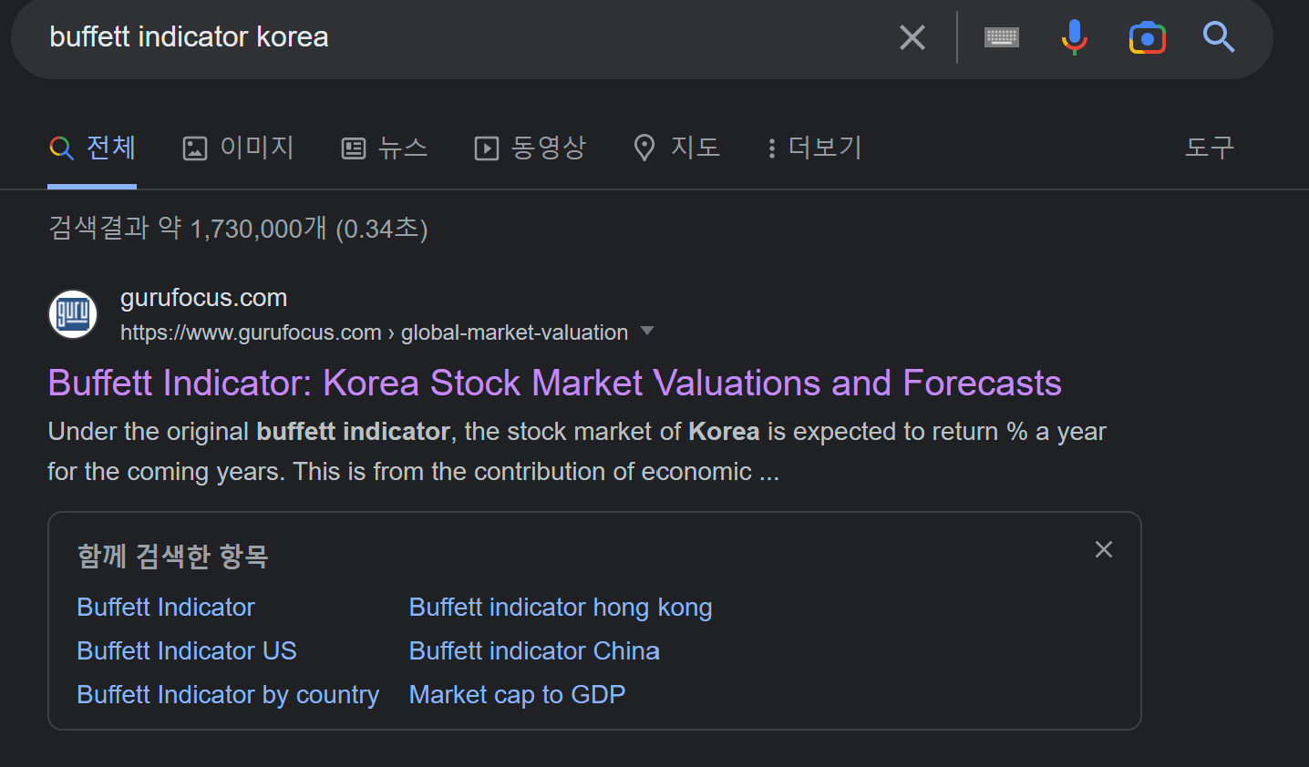 - 워런 버핏이 제안한 한 나라의 주식시장 과열 정도