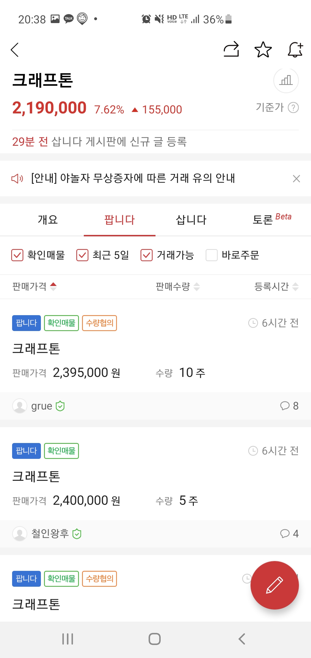 2만 원 후반에 보유 중에 4만 원대까지 올라가 팔려고 했으나, 잘 팔리지 않아 결국 3만 5천 원에 팔았던 기억 있습니다.