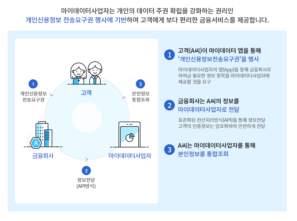 - 마이데이터는 사용자의 동의를 받아 개인이 직접 소유