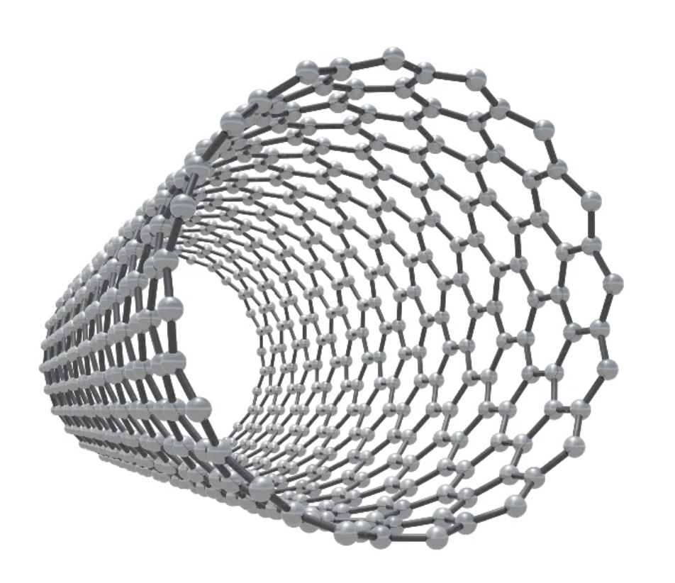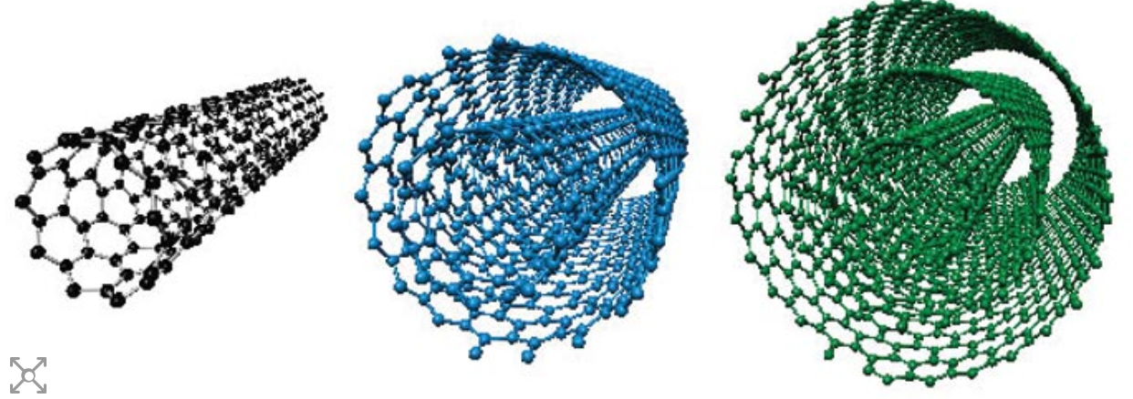 - 6개의 육각형 탄소원자가 튜브 모양으로 이어져 그물 구조를 이루는 나선형 물질