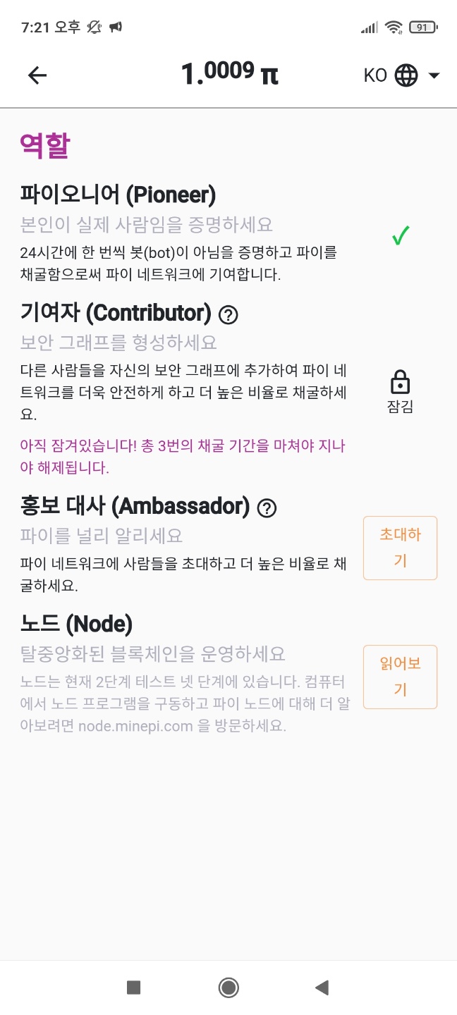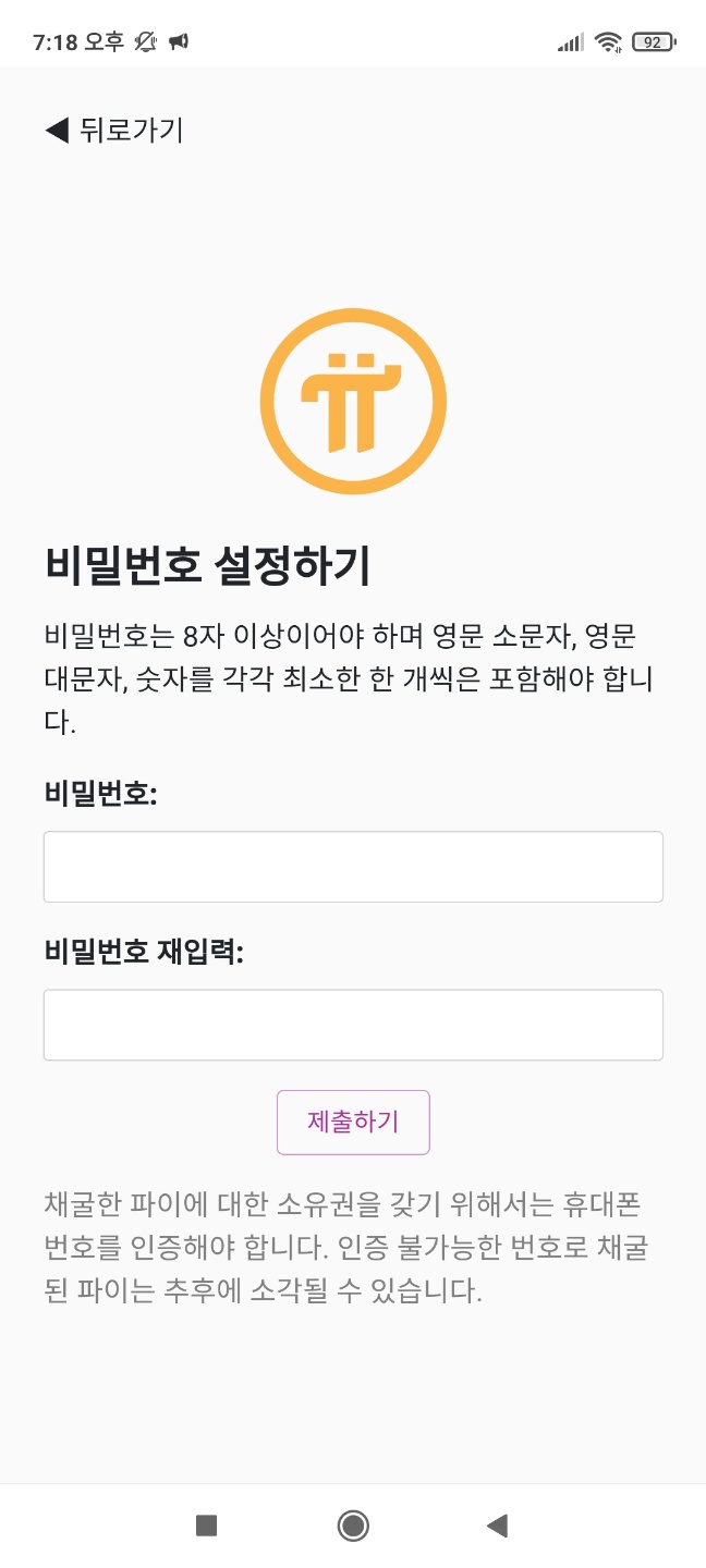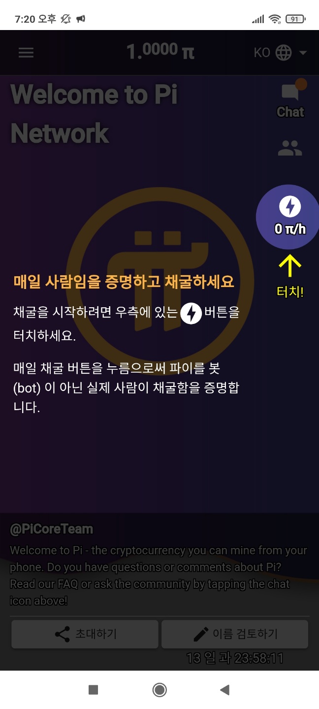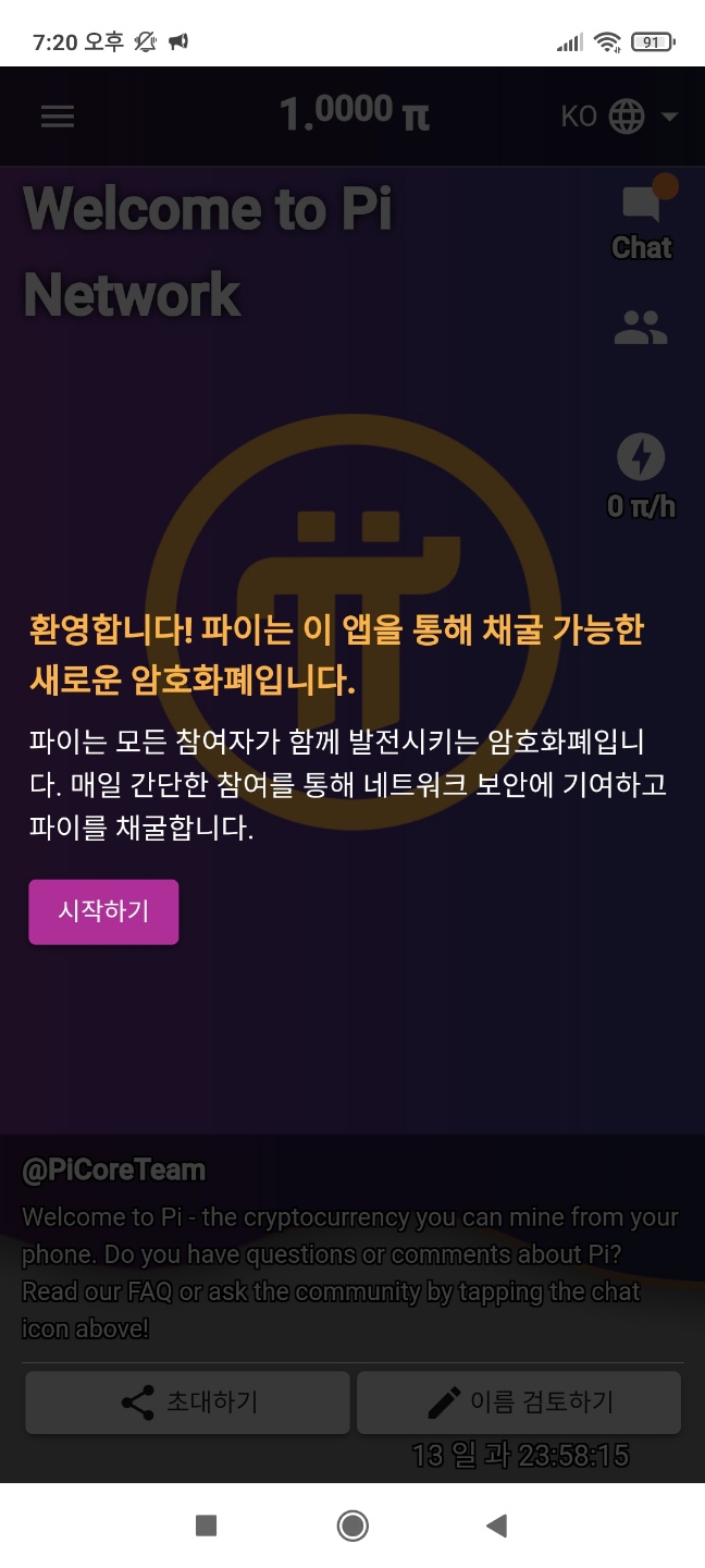 - 가입 끝 ▶ 파이코인과 같이 매일 24시 후 벌 모양 클릭