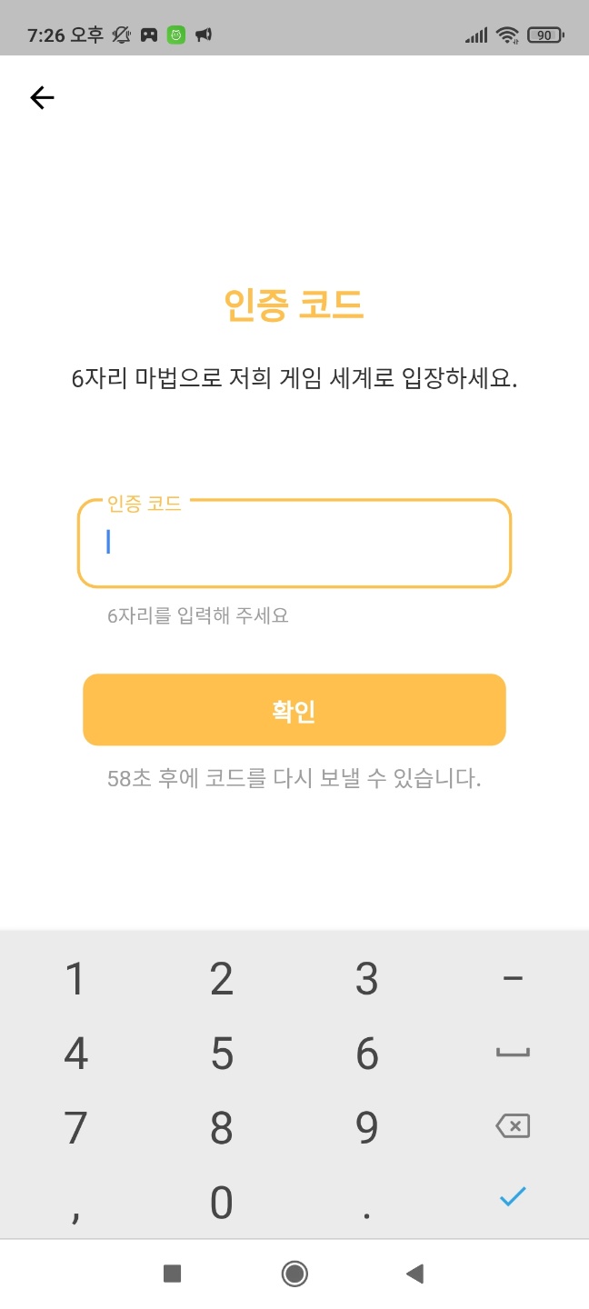 - 인증 코드 입력