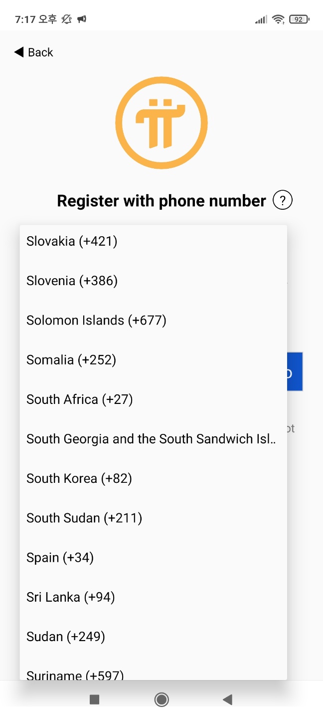 - 국가번호(South Korea) 선택 ▶ 핸드폰 번호 입력