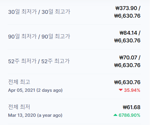 2020년 최저가 대비 약 6700% 상승, 한 달 사이 1700% 상승한 미친 코인입니다.