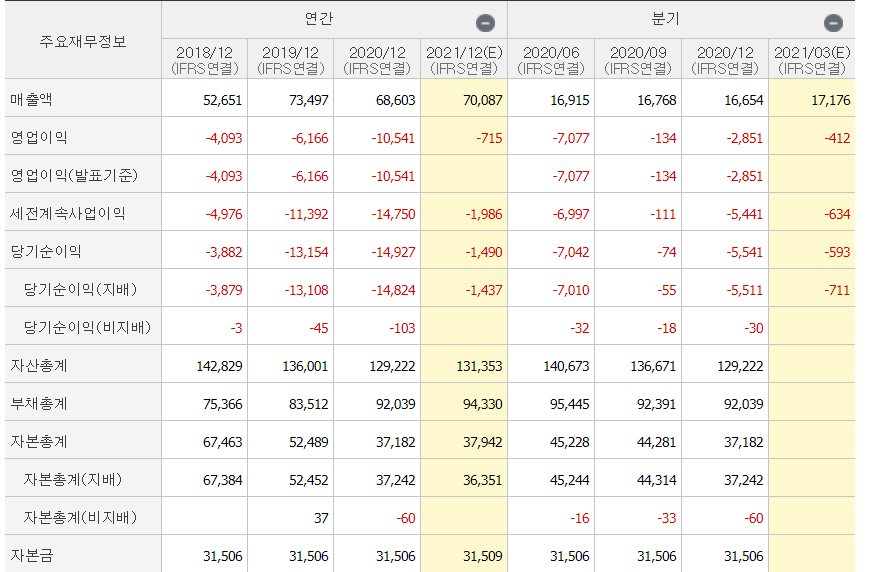- 2021년 영업손실 7,600억 전망