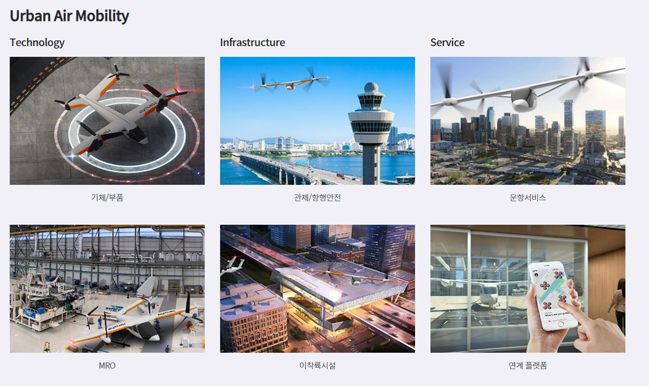 UAM은 기체(비행체) 개발 외에도 제도개선, 인프라구축, 인력 확보 등 다양한 준비가 필요한 사업입니다.