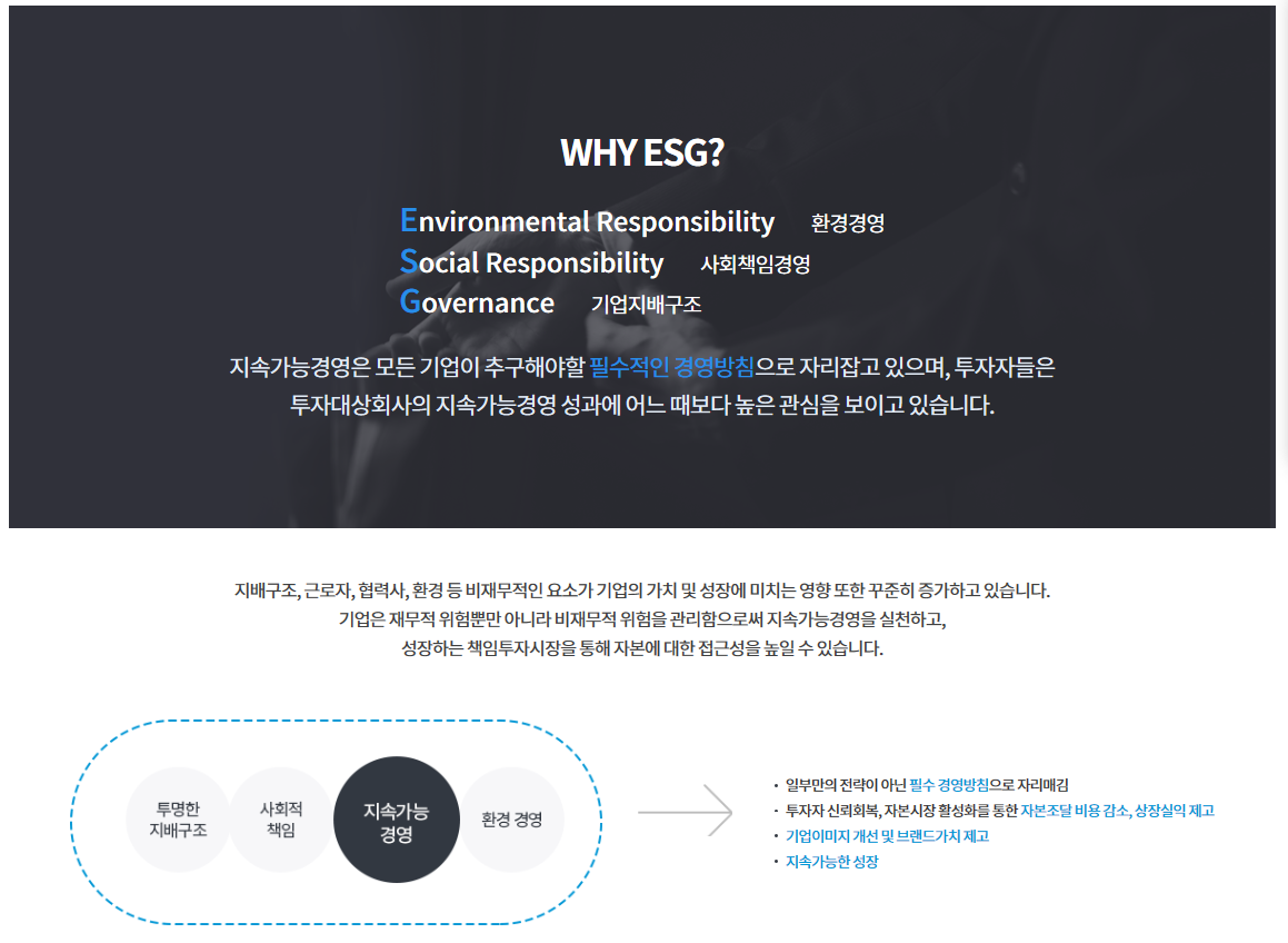 기업경영 시 ESG의 중요성을 많이 부각되고 있습니다.