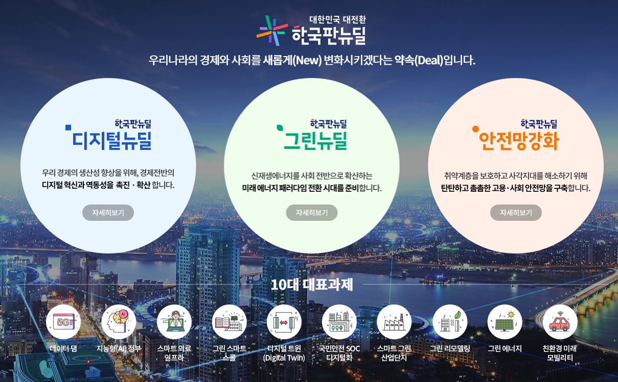 이미 한국판 뉴딜 정책은 2020년 4월에 처음 언급한 이후 포스트 코로나 시대