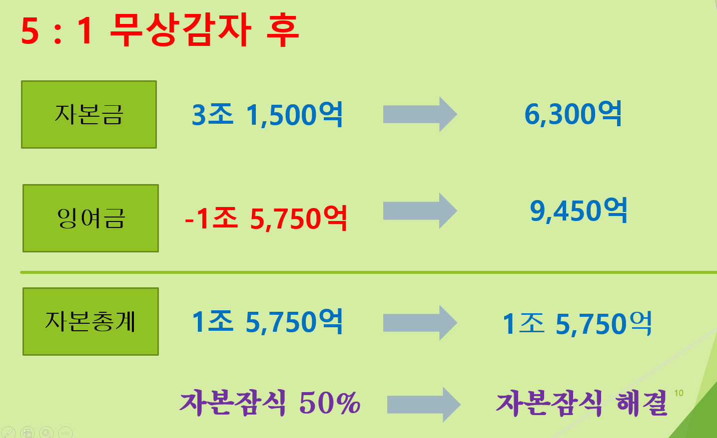 - 감자전 자본금 3조1,500억 -> 감자후 자본금 6,300억